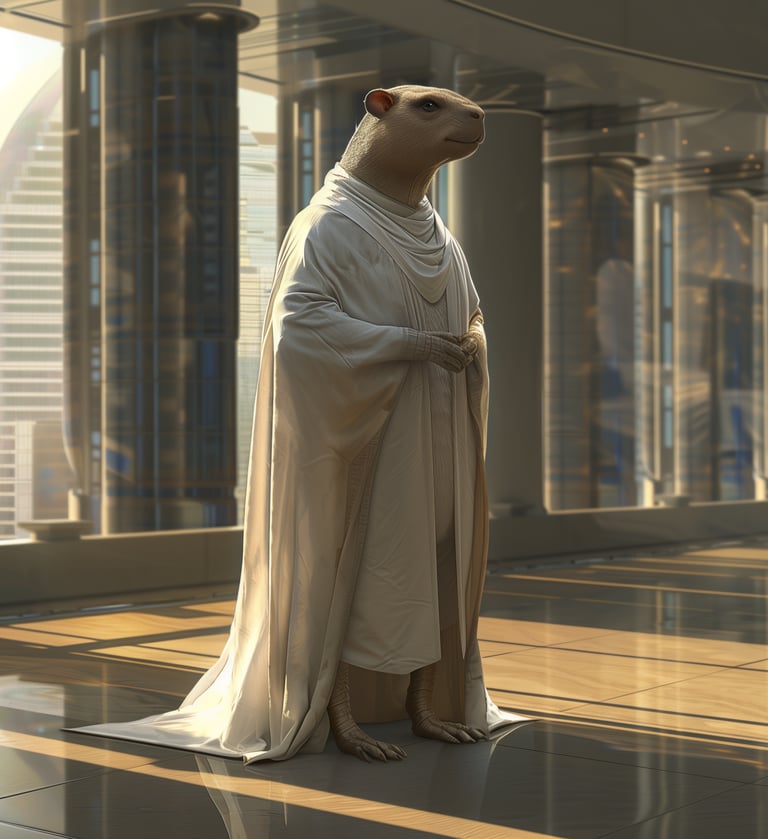 Leader Danuibi is a venerable figure among the Razuud, serving as both the leader of the alien species and the capital city of Rutuan. He stands out as a pioneer who broke away from societal norms to advocate for greater freedoms and comforts for the workers of his people. Known for his honesty, integrity, and righteousness, Danuibi earned his esteemed position through his unwavering dedication to truth and justice.
